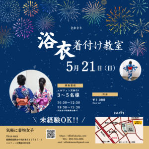 2023/5/21(日)開催・ゆかた着付け教室